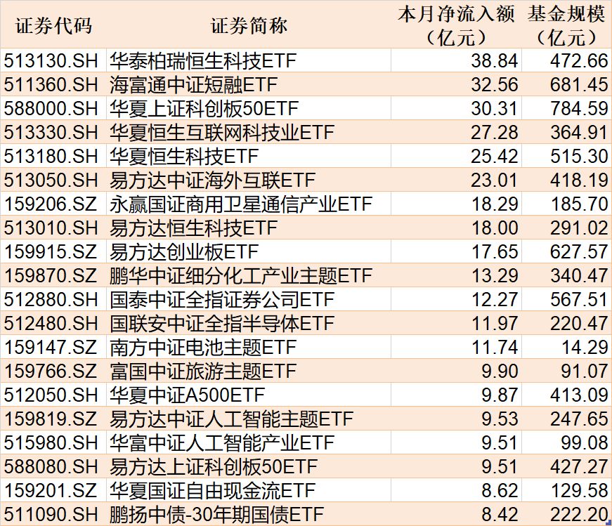截至 2 月 6 日,本月资金净流入额居前 20 的 ETF 名单如下: