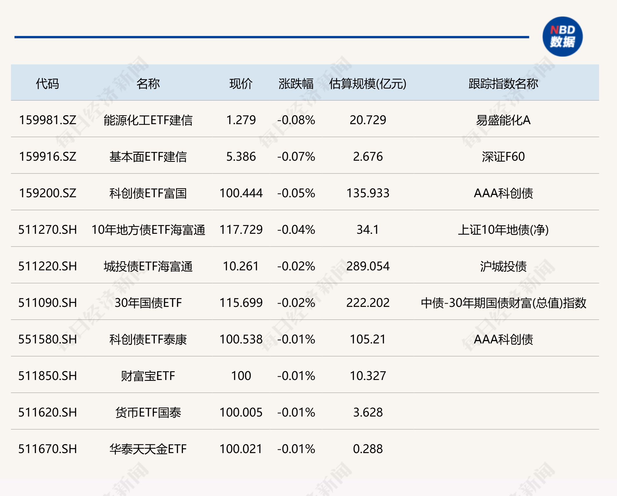 下跌方面,能源化工 ETF 建信跌幅居前。