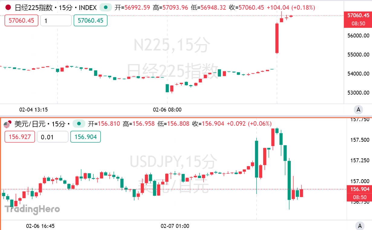截至发稿,基准日经 225 指数一度飙升超过 5%,创下历史新高;更广泛的东证指数也上涨多达 2.6%,达到新的峰值。电子和银行板块领涨。